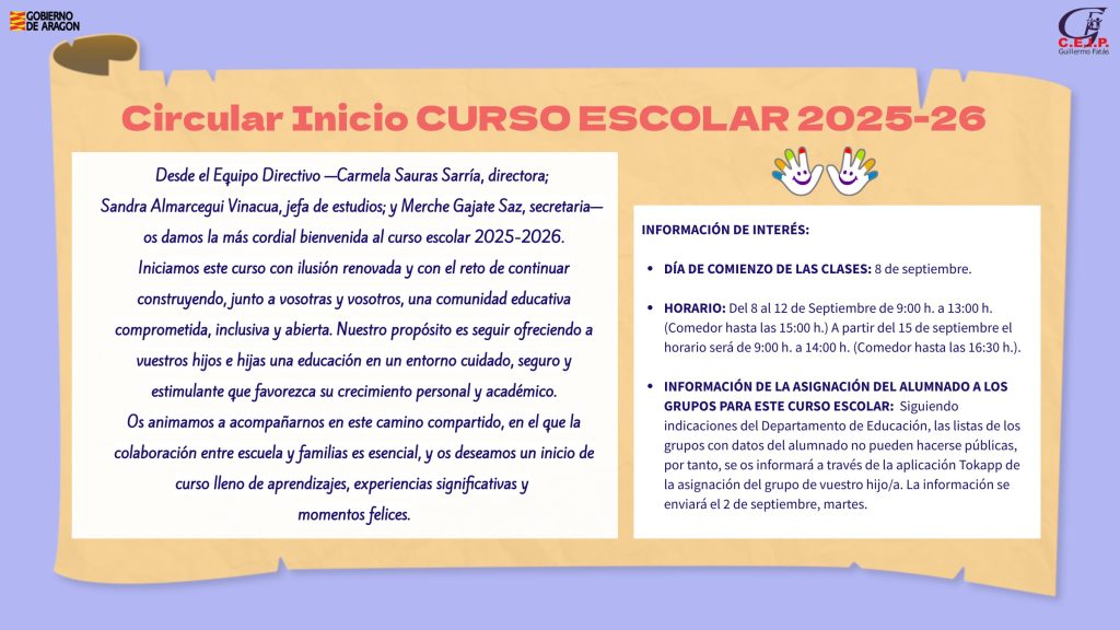 Enlaces para acceder a más información sobre el proceso de escolarización:Página web educaragon: https://educa.aragon.es/admisionInstagram Gobierno de Aragón: https://www.instagram.com/p/DHGk0wFqMJr/?img_index=3&igsh=MW5lY3psYjY2bnBkNA== |