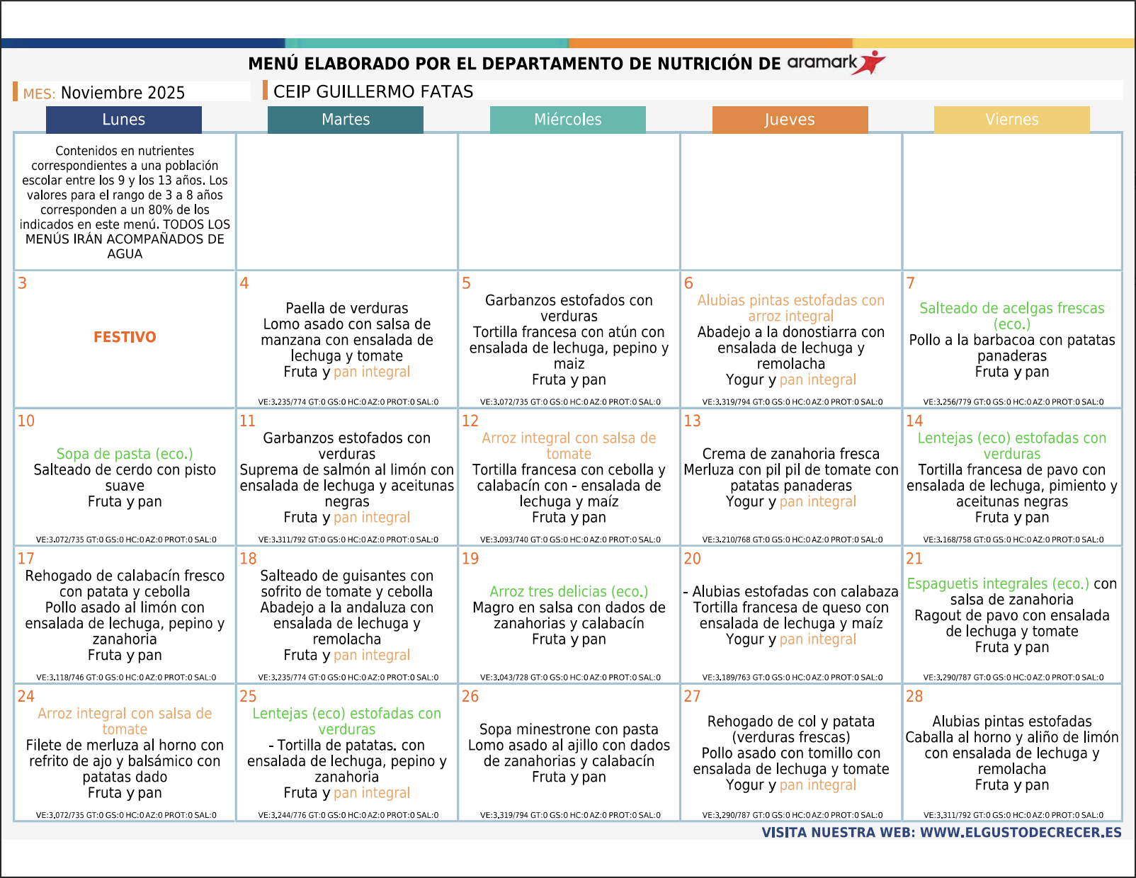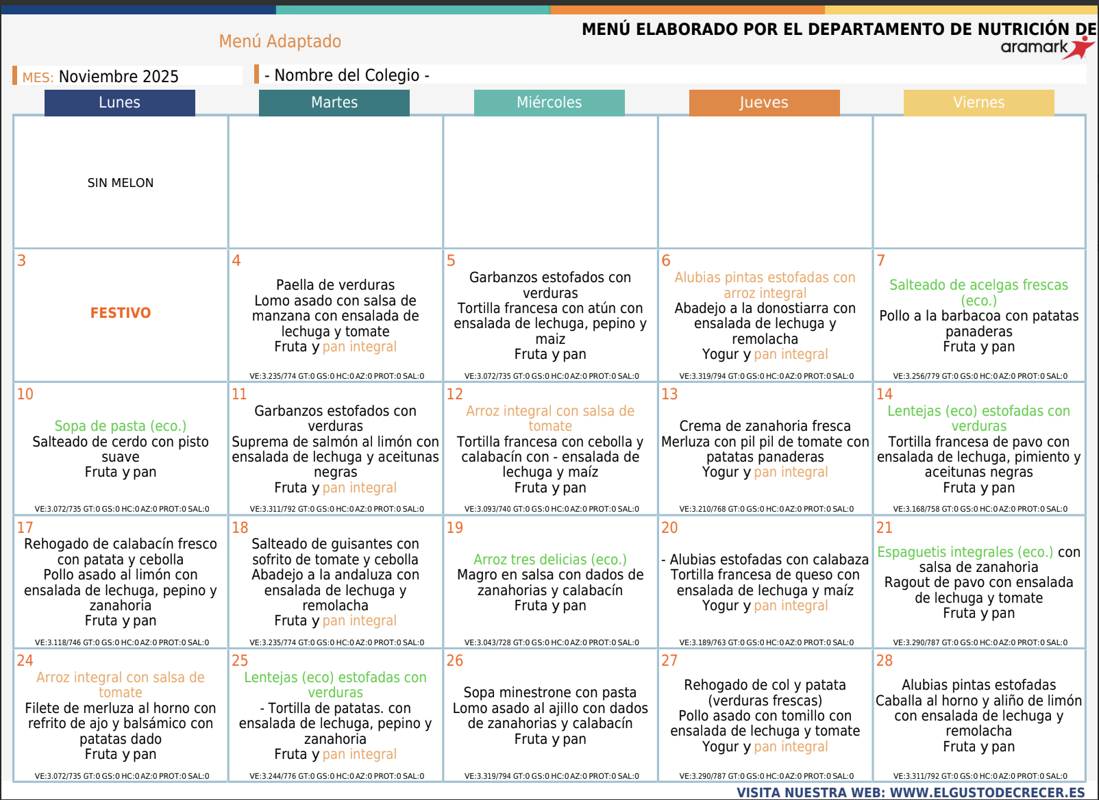 Menú Adaptado Sin melón