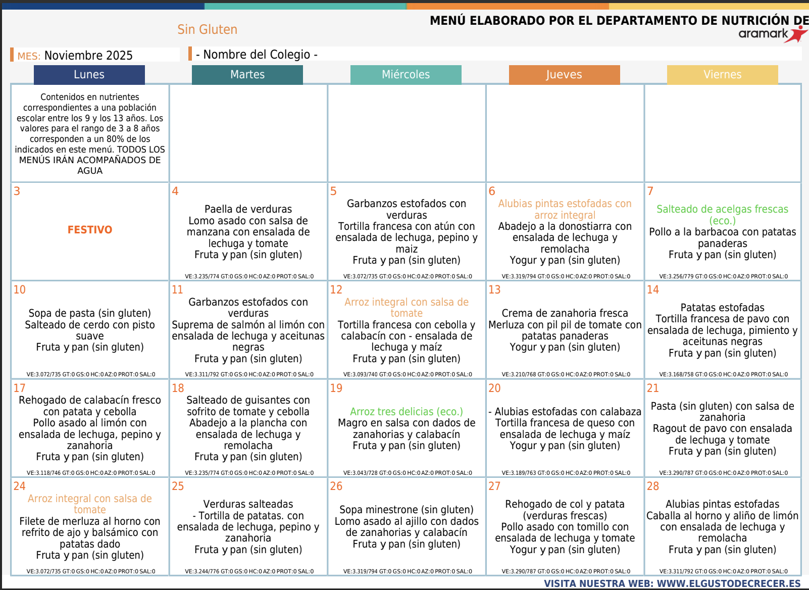 Menú Sin Gluten